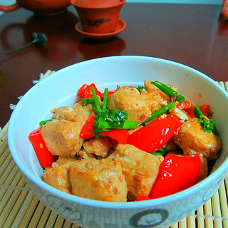 原料:豆腐、红辣椒、芹菜、精盐、食用油、酱油、麻辣鲜、味精。