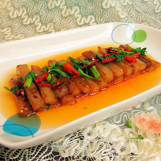 原料:白萝卜、香芹、辣椒、精盐、植物油、酱油、味精。