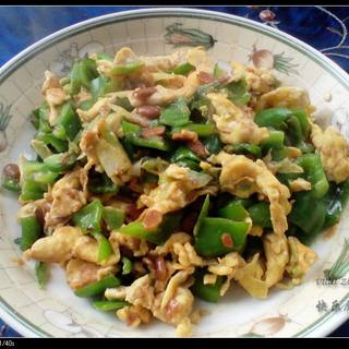 原料:鸡蛋、青椒、葱、黄豆酱。