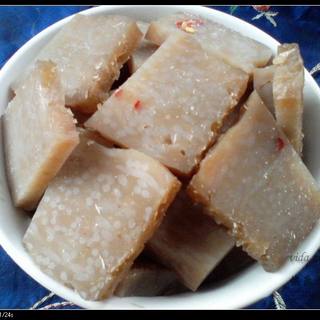 原料:白萝卜、大蒜、辣椒、精盐、食用油、酱油、味精。