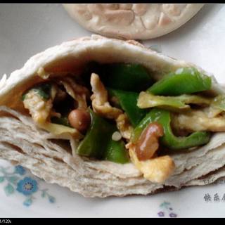 原料:发面饼、青椒、鸡蛋、黄豆酱。