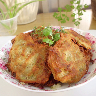 原料:萝卜、黑豆渣、玉米面、鸡蛋、五香粉、盐。