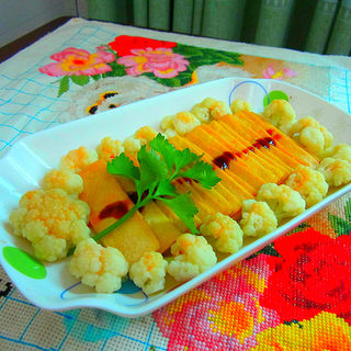原料:白豆腐片、花菜、精盐、植物油、蚝油、蒸鱼豉油。