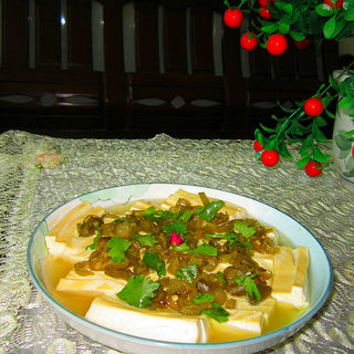 原料:豆腐、酸辣椒、精盐、食用油、葱花、鸡精。