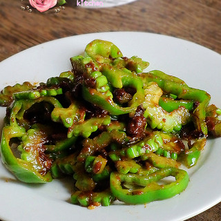 原料:尖椒、苦瓜、豆瓣酱、鸡精、葱碎。