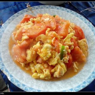 原料:番茄、鸡蛋、葱花、姜末、盐、白糖、十三香。
