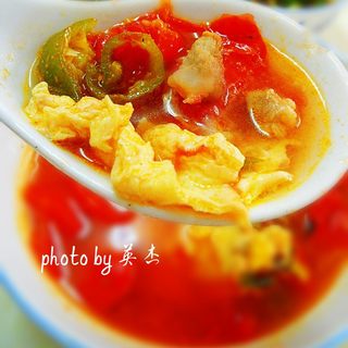 原料:西红柿、猪瘦肉、鸡蛋、葱、尖椒、油、酱油、盐、五香粉。