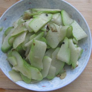 原料:佛手瓜、大蒜、姜、花椒、辣椒、盐、鸡精。