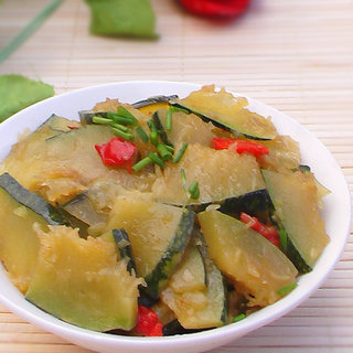 原料:嫩南瓜、西红柿、油、盐、姜、蒜、葱、甜面酱。