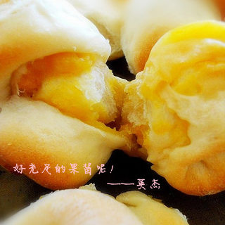 原料:高筋面粉、黄油、酵母、牛奶、自制果酱。