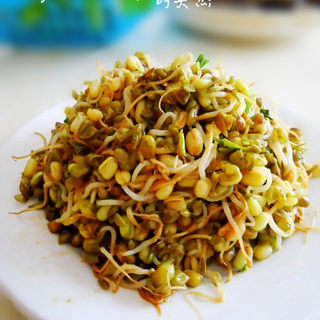 原料:绿豆芽、葱、油、酱油、五香粉、盐、味精。