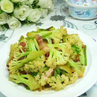 原料:芹菜、台湾花菜、风干肉、生抽、盐、鸡精。