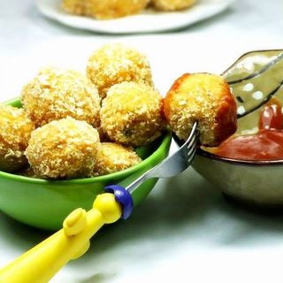 原料:鸡脯肉、鸡蛋、胡萝卜、面包渣、淀粉、料酒、胡椒粉、盐、糖。