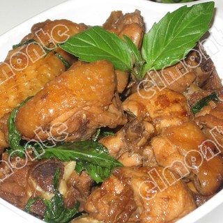 原料:鸡、蒜、姜、米酒、生抽、麻油、糖、九层塔。