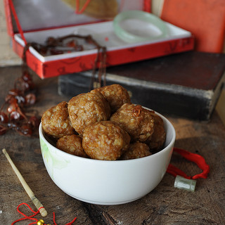 原料:精肉、莲藕、鸡蛋、生姜、大葱、盐、五香粉、酱油、油。