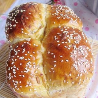 原料:高粉、鸡蛋、牛奶、酵母、糖、盐、黄油、黑芝麻。