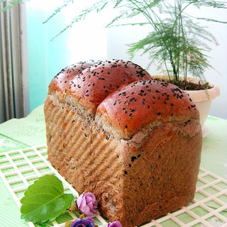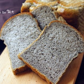 原料:高粉、白糖、玉米油、水、酵母、盐、黑芝麻粉、黑字芝麻。