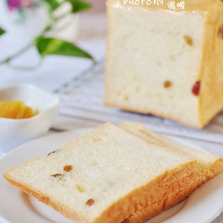 原料:高粉、鸡蛋、奶粉、糖、盐、酵母、黄油、水、葡萄干。