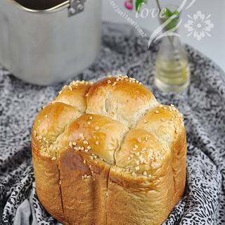 原料:高筋面粉、米饭、牛奶、奶粉、白糖、盐、酵母粉、鸡蛋、黄油。
