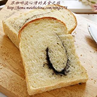 原料:高筋粉、水、酵母、盐、脱脂奶粉、高筋粉、奶粉、盐、糖、水、鸡蛋液、酵母、黄油、黑芝麻酱、糖、白芝麻。