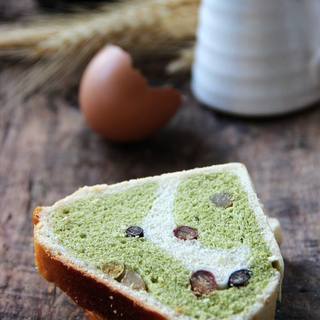 原料:高筋面粉、低筋面粉、无盐黄油、砂糖、鸡蛋、牛奶、盐、酵母、抹茶粉、蜜彩豆。