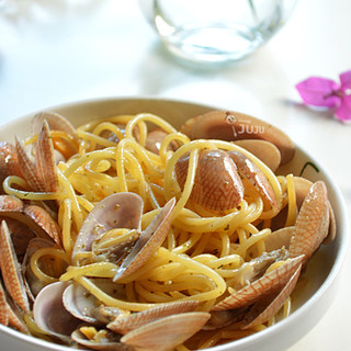 原料:花蛤、意粉、蒜头、蒜香粉、盐。