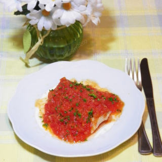 原料:比目鱼、番茄、洋葱、红葱头、白葡萄酒、番茄酱、鱼高汤。