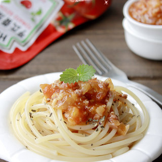 原料:牛肉馅、猪肉馅、番茄、洋葱、蒜、黄油、盐、番茄酱、黑胡椒碎、糖、罗勒。