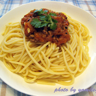 原料:直条意面、牛肉、西红柿、洋葱、大蒜、黑胡椒碎、罗勒、橄榄油、黄油、盐。