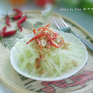原料:青木瓜、柠檬、蒜、辣椒、虾米、花生、椰蓉、鱼露。