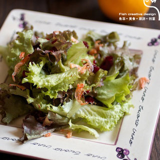原料:冷冻覆盆子、砂糖、红绿叶生菜、樱花虾。