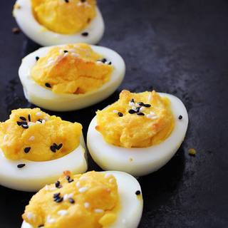 原料:鸡蛋、白芝麻、黑芝麻、蛋黄酱、黑胡椒、米醋、盐。