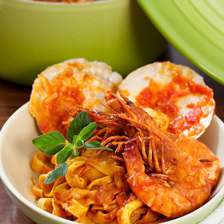 原料:意式宽面、深海明虾、扇贝、番茄酱、新鲜牛至、萨夫福里托、小海鲜、干白葡萄酒、白洋葱、番茄罐头、蒜、香叶、新鲜百里香、罗勒、海盐、橄榄油。