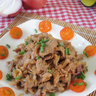 原料:里脊肉、洋葱、蒜、酱油、白糖、盐、麻油。