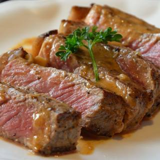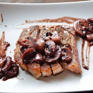 原料:紐約牛排、牛油、蒜、干紅葡萄酒、濃縮牛肉湯底、白蘭地、蘑菇、鹽、黑胡椒顆粒。