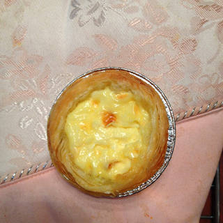 原料:圣士蛋挞皮、淡奶油、牛奶、糖、鸡蛋黄。