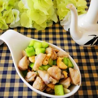 原料:石斑鱼肉、腰果、黄瓜、葱、姜、蒜、盐、白酒、淀粉、鸡粉、水淀粉、橄榄油。