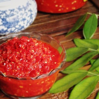 原料:新鲜红尖辣椒、大蒜、白糖、盐、高度白酒。