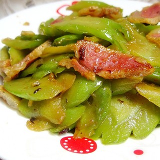 原料:百叶、腊肉、新鲜大蒜、姜、油、盐、郫县豆瓣。