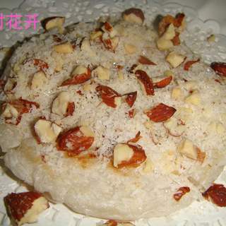原料:糯米粉、大杏仁、椰蓉、水、白糖。