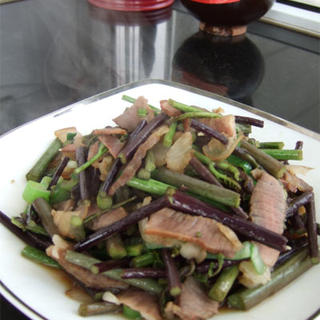 原料:蒜苔、腊肠、胡萝卜、食用油、葱、盐、生抽。