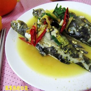 原料:黄鸭叫、大蒜、红干辣椒、小葱、盐、油。