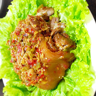 原料:肘子、酸豇豆、泡辣椒、泡姜、豆瓣、生抽、老抽、醪糟、白砂糖、陈醋、白胡椒粉、肉蔻、草果、三萘、大料。