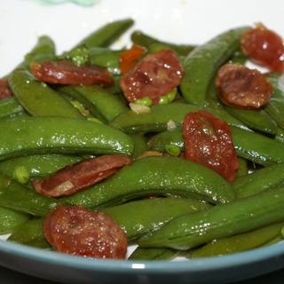 原料:甜豆、广式腊肠、清水、蒜头、盐。