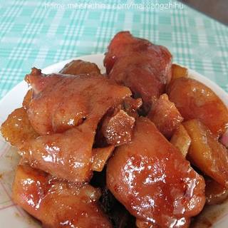 原料:猪蹄、白萝卜、桂皮、八角、姜片、小茴香、香叶、老抽、生抽、盐、冰糖。
