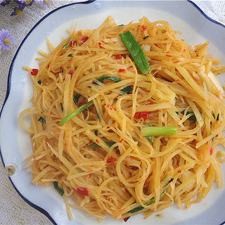 原料:土豆、葱、姜、蒜、干辣椒、辣椒酱、油、醋。