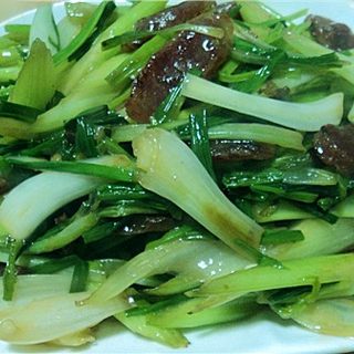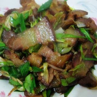 原料:青蒜、腊肉、姜丝、料酒、酱油。