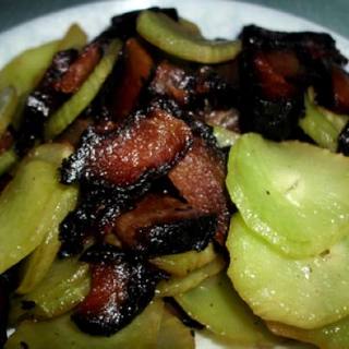 原料:莴笋、腊肉、盐、蚝油、鱼露、料酒。
