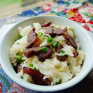 原料:糯米、五花肉、香菇、胡萝卜、甜玉米、红椒、青蒜、生姜、食盐、蚝油、生抽。