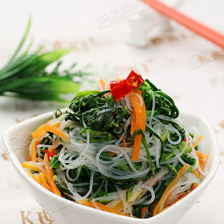 原料:面条菜、粉丝、胡萝卜、大葱、大蒜、干辣椒、盐、白糖、味精、白醋。